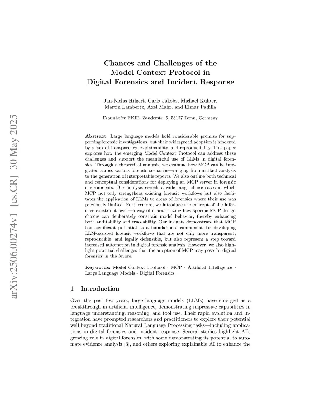 Chances and Challenges of the Model Context Protocol in Digital Forensics and Incident Response