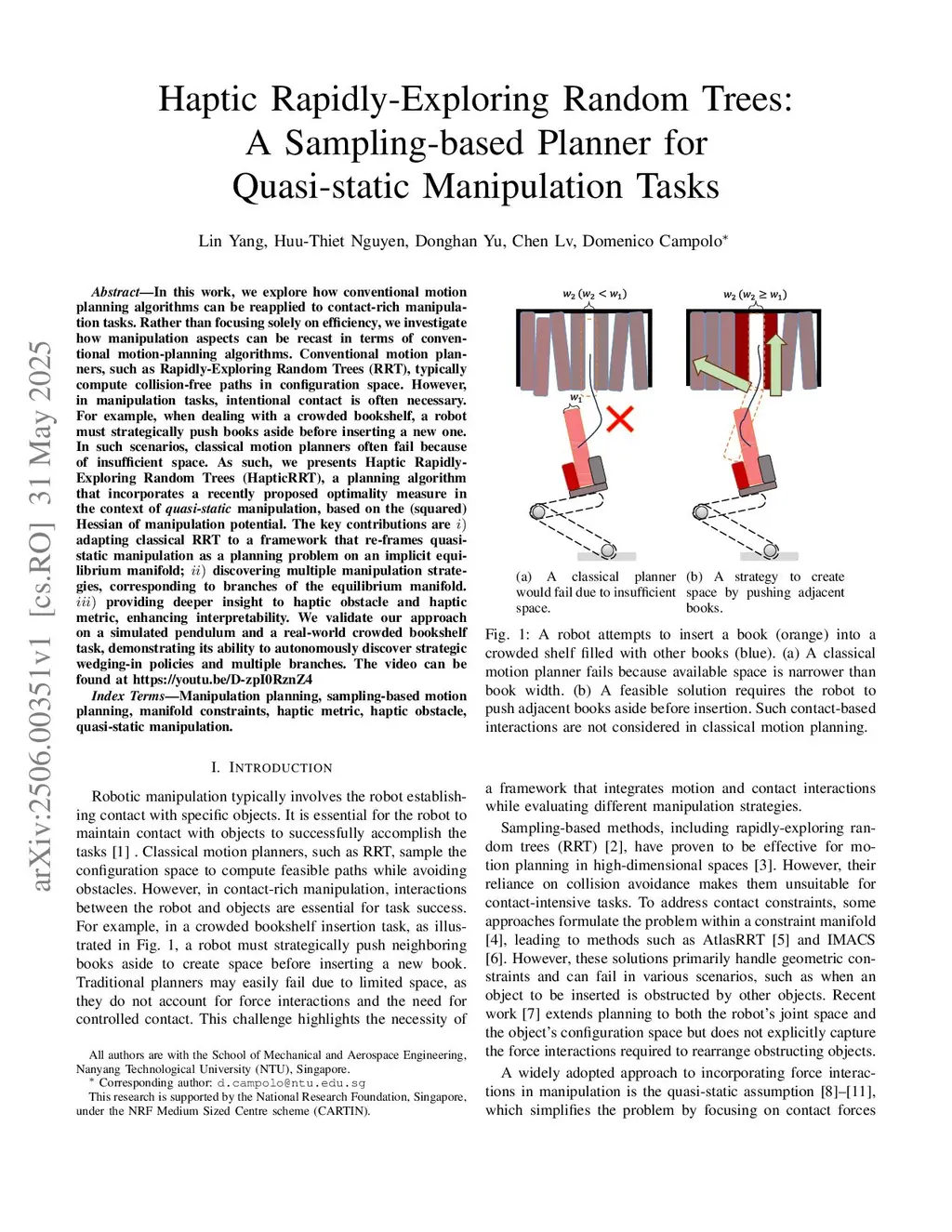 In this work, we explore how conventional motion planning algorithms can be reapplied to contact-rich manipulation tasks. Rather than focusing solely on efficiency, we investigate how manipulation aspects can be recast in terms of conventional motion-planning algorithms. Conventional motion planners, such as Rapidly-Exploring Random Trees (RRT), typically compute collision-free paths in configuration space. However, in many manipulation tasks, contact is either unavoidable or essential for task success, such as for creating space or maintaining physical equilibrium. As such, we presents Haptic Rapidly-Exploring Random Trees (HapticRRT), a planning algorithm that incorporates a recently proposed optimality measure in the context of \textit{quasi-static} manipulation, based on the (squared) Hessian of manipulation potential. The key contributions are i) adapting classical RRT to operate on the quasi-static equilibrium manifold, while deepening the interpretation of haptic obstacles and metrics; ii) discovering multiple manipulation strategies, corresponding to branches of the equilibrium manifold. iii) validating the generality of our method across three diverse manipulation tasks, each requiring only a single manipulation potential expression. The video can be found atthis https URL.