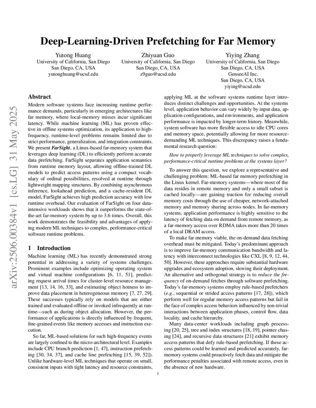 Memory prefetching has long boosted CPU caches and is increasingly vital for far-memory systems, where large portions of memory are offloaded to cheaper, remote tiers. While effective prefetching requires accurate prediction of future accesses, prior ML approaches have been limited to simulation or small-scale hardware. We introduce FarSight, the first Linux-based far-memory system to leverage deep learning by decoupling application semantics from runtime memory layout. This separation enables offline-trained models to predict access patterns over a compact ordinal vocabulary, which are resolved at runtime through lightweight mappings. Across four data-intensive workloads, FarSight delivers up to 3.6x higher performance than the state-of-the-art.