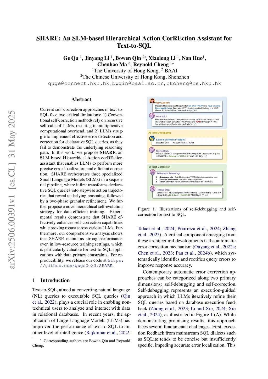 SHARE: An SLM-based Hierarchical Action CorREction Assistant for Text-to-SQL