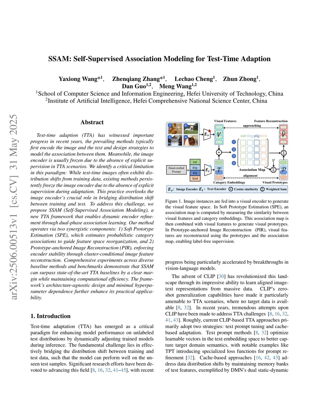 SSAM: Self-Supervised Association Modeling for Test-Time Adaption
