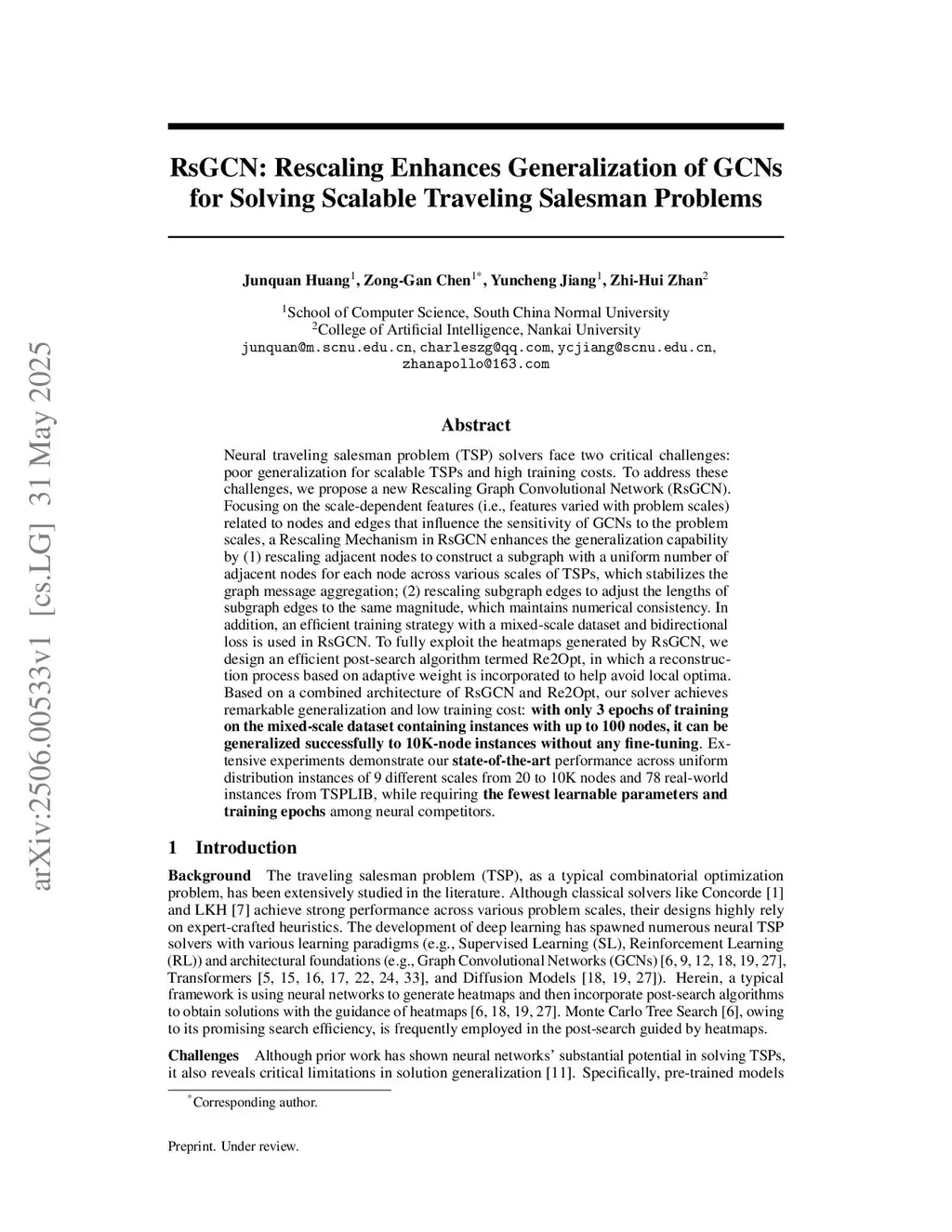RsGCN: Rescaling Enhances Generalization of GCNs for Solving Scalable Traveling Salesman Problems