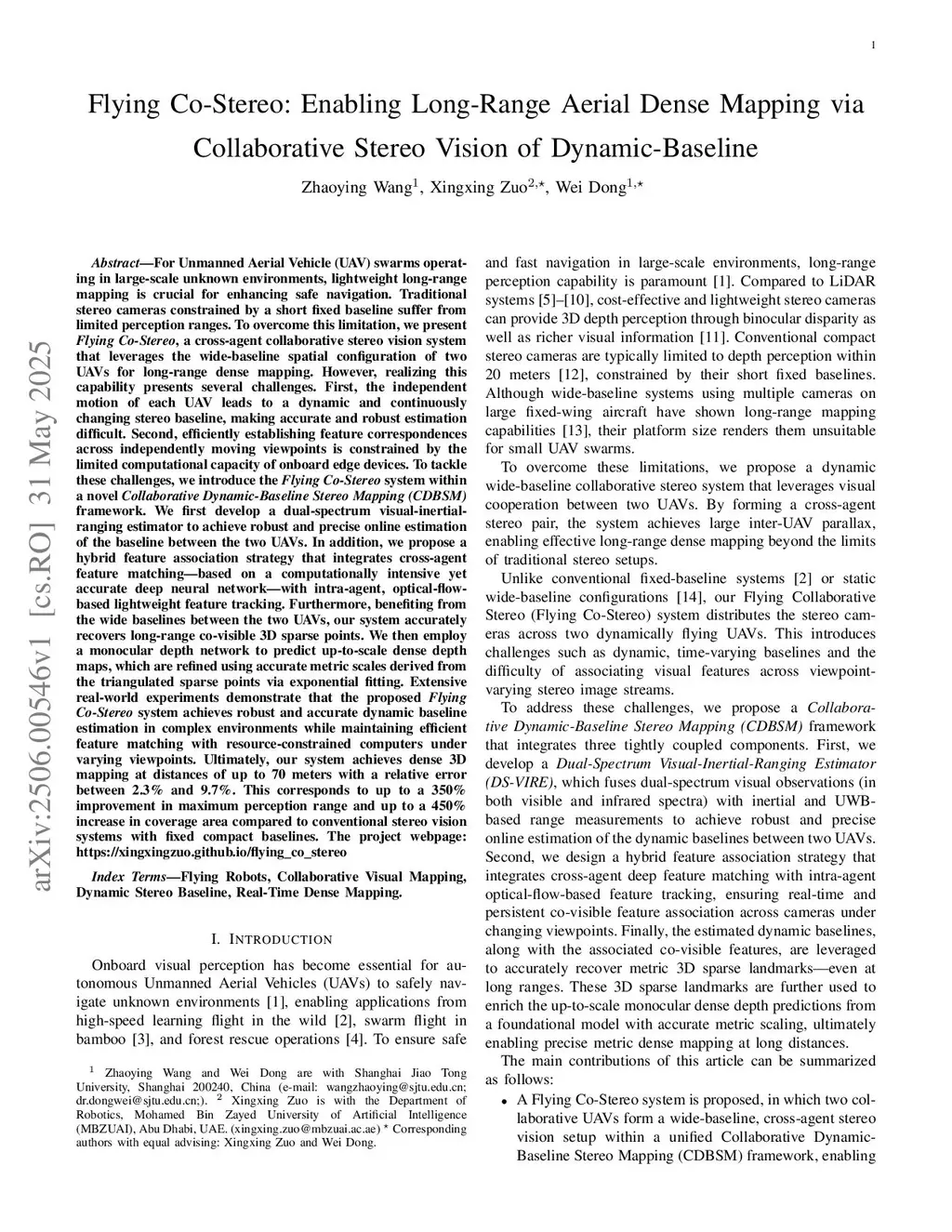 Flying Co-Stereo: Enabling Long-Range Aerial Dense Mapping via Collaborative Stereo Vision of Dynamic-Baseline