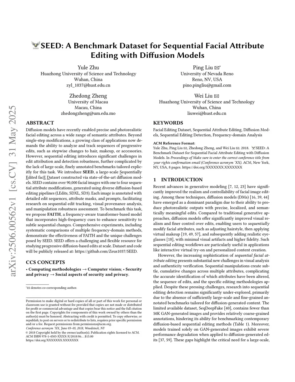 Diffusion models have recently enabled precise and photorealistic facial editing across a wide range of semantic attributes. Beyond single-step modifications, a growing class of applications now demands the ability to analyze and track sequences of progressive edits, such as stepwise changes to hair, makeup, or accessories. However, sequential editing introduces significant challenges in edit attribution and detection robustness, further complicated by the lack of large-scale, finely annotated benchmarks tailored explicitly for this task. We introduce SEED, a large-scale Sequentially Edited facE Dataset constructed via state-of-the-art diffusion models. SEED contains over 90,000 facial images with one to four sequential attribute modifications, generated using diverse diffusion-based editing pipelines (LEdits, SDXL, SD3). Each image is annotated with detailed edit sequences, attribute masks, and prompts, facilitating research on sequential edit tracking, visual provenance analysis, and manipulation robustness assessment. To benchmark this task, we propose FAITH, a frequency-aware transformer-based model that incorporates high-frequency cues to enhance sensitivity to subtle sequential changes. Comprehensive experiments, including systematic comparisons of multiple frequency-domain methods, demonstrate the effectiveness of FAITH and the unique challenges posed by SEED. SEED offers a challenging and flexible resource for studying progressive diffusion-based edits at scale. Dataset and code will be publicly released at:this https URL.