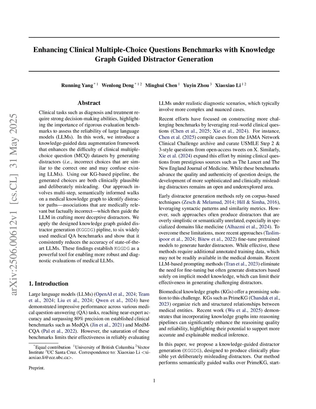 Enhancing Clinical Multiple-Choice Questions Benchmarks with Knowledge Graph Guided Distractor Generation