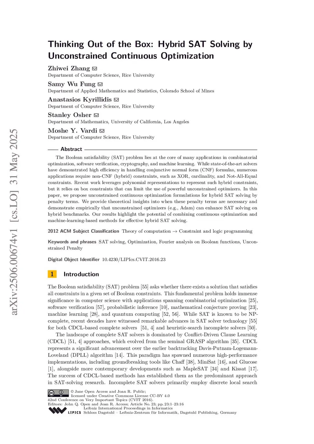 Thinking Out of the Box: Hybrid SAT Solving by Unconstrained Continuous Optimization