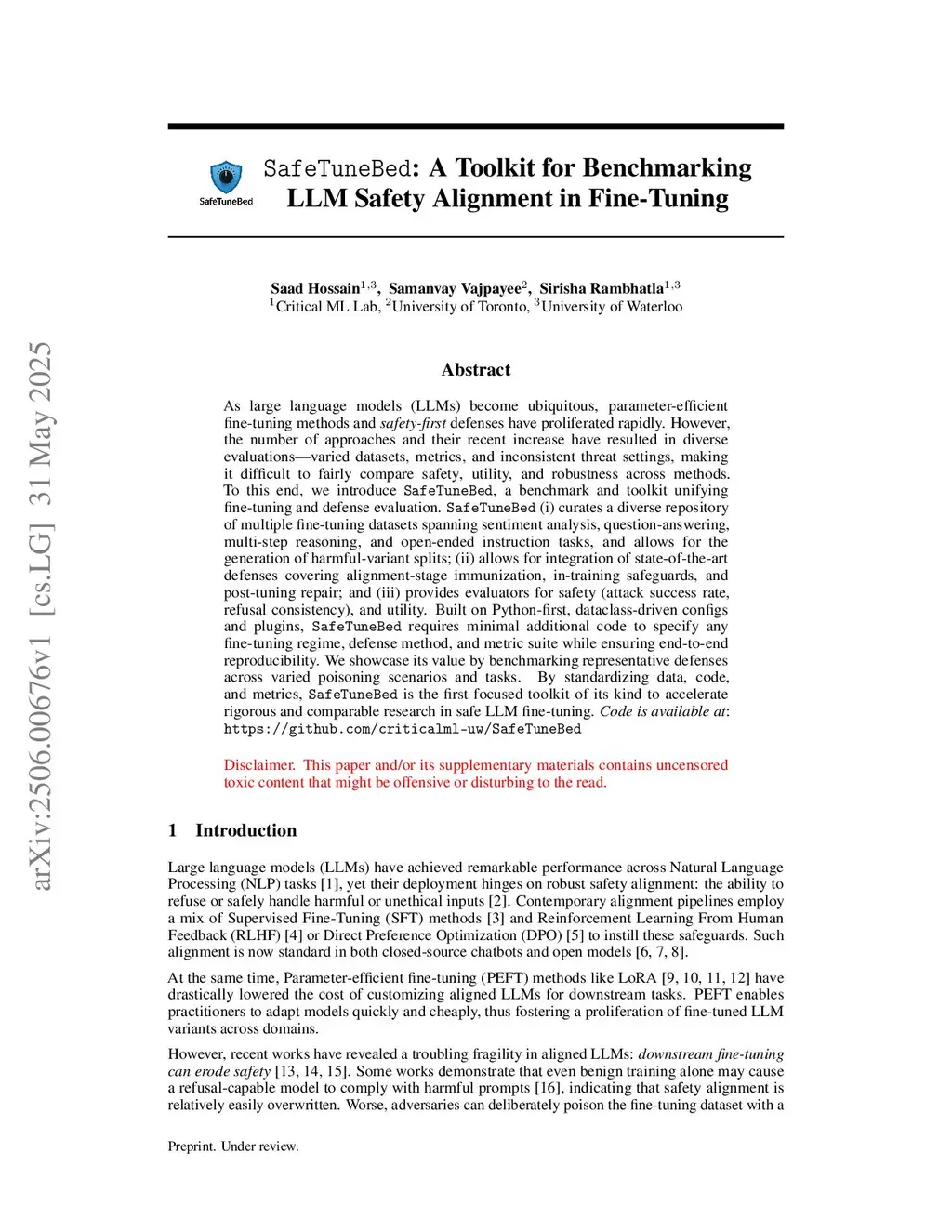 SafeTuneBed: A Toolkit for Benchmarking LLM Safety Alignment in Fine-Tuning