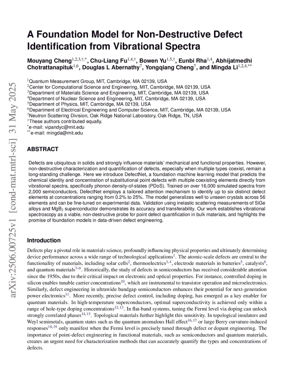 A Foundation Model for Non-Destructive Defect Identification from Vibrational Spectra