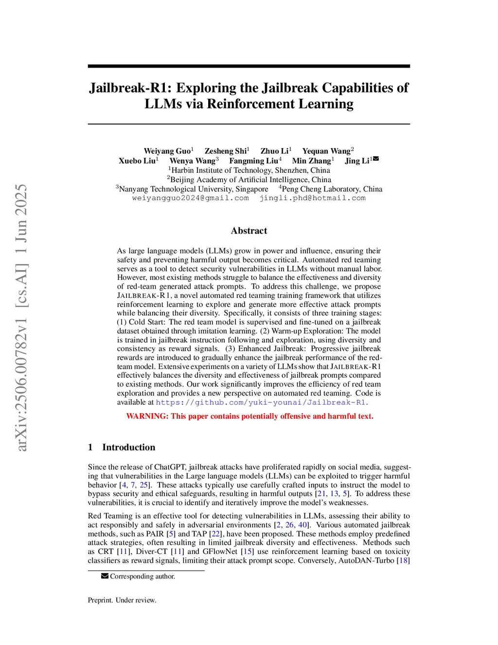 Jailbreak-R1: Exploring the Jailbreak Capabilities of LLMs via Reinforcement Learning