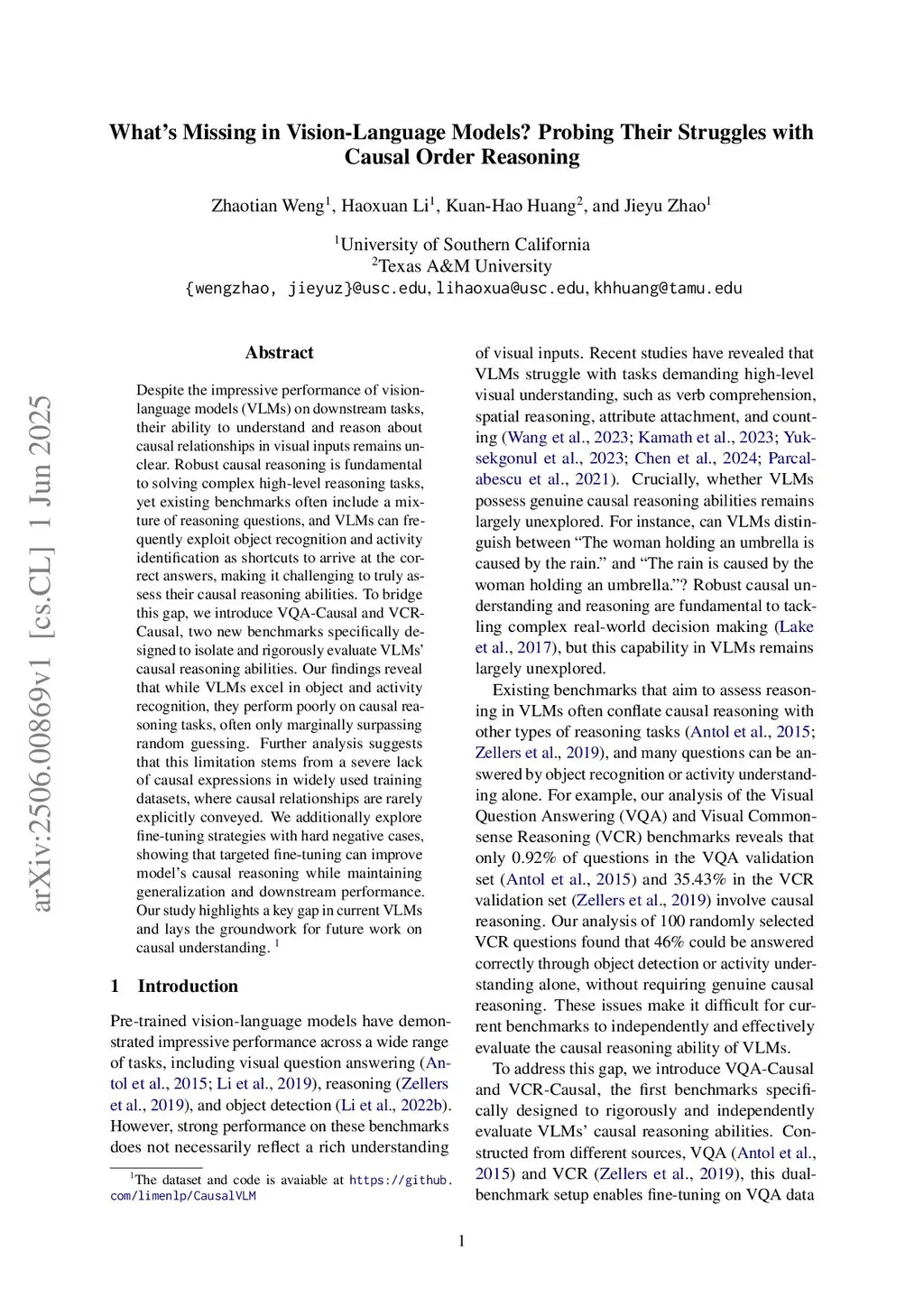 What's Missing in Vision-Language Models? Probing Their Struggles with Causal Order Reasoning