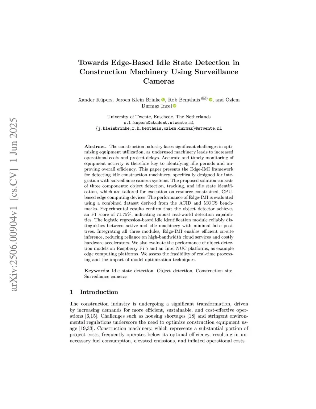 Towards Edge-Based Idle State Detection in Construction Machinery Using Surveillance Cameras