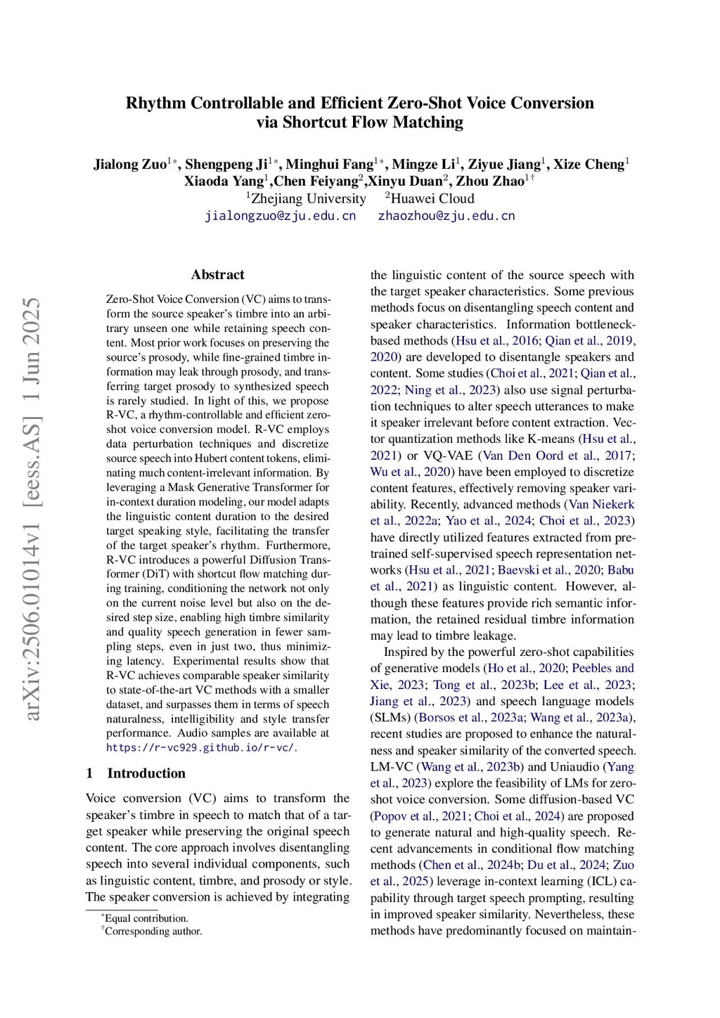 Rhythm Controllable and Efficient Zero-Shot Voice Conversion via Shortcut Flow Matching