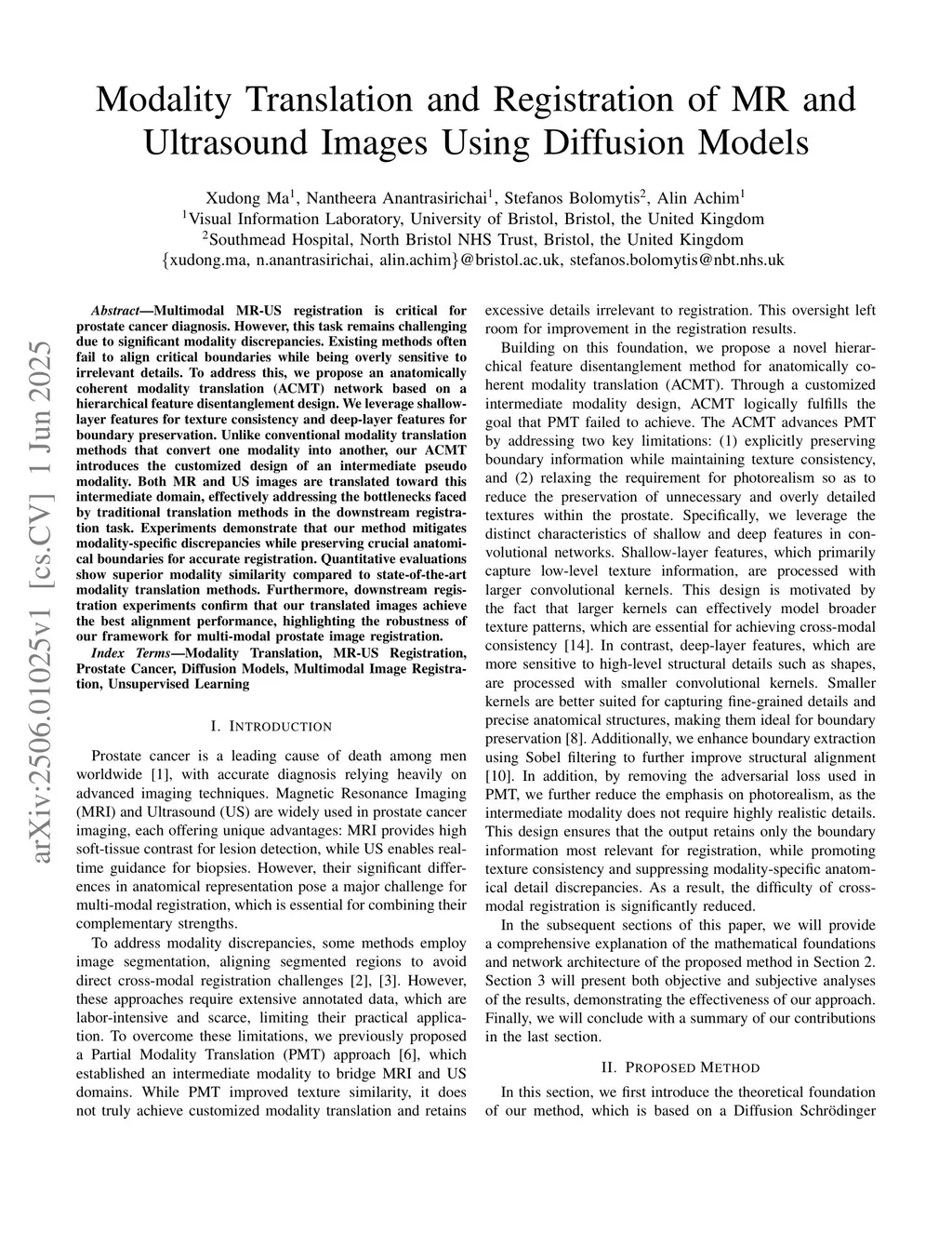 Modality Translation and Registration of MR and Ultrasound Images Using Diffusion Models