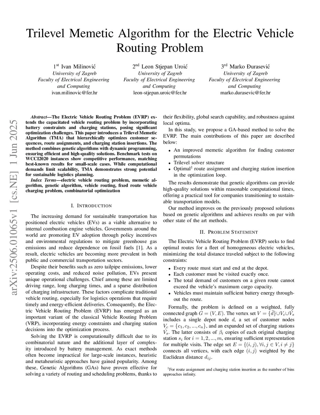 Trilevel Memetic Algorithm for the Electric Vehicle Routing Problem