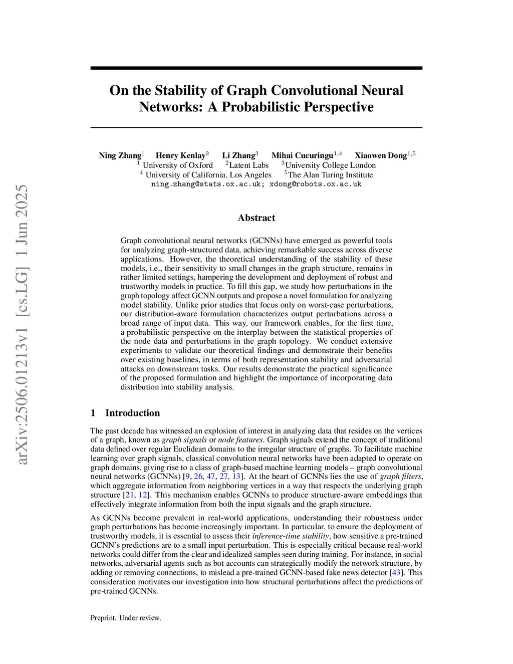On the Stability of Graph Convolutional Neural Networks: A Probabilistic Perspective