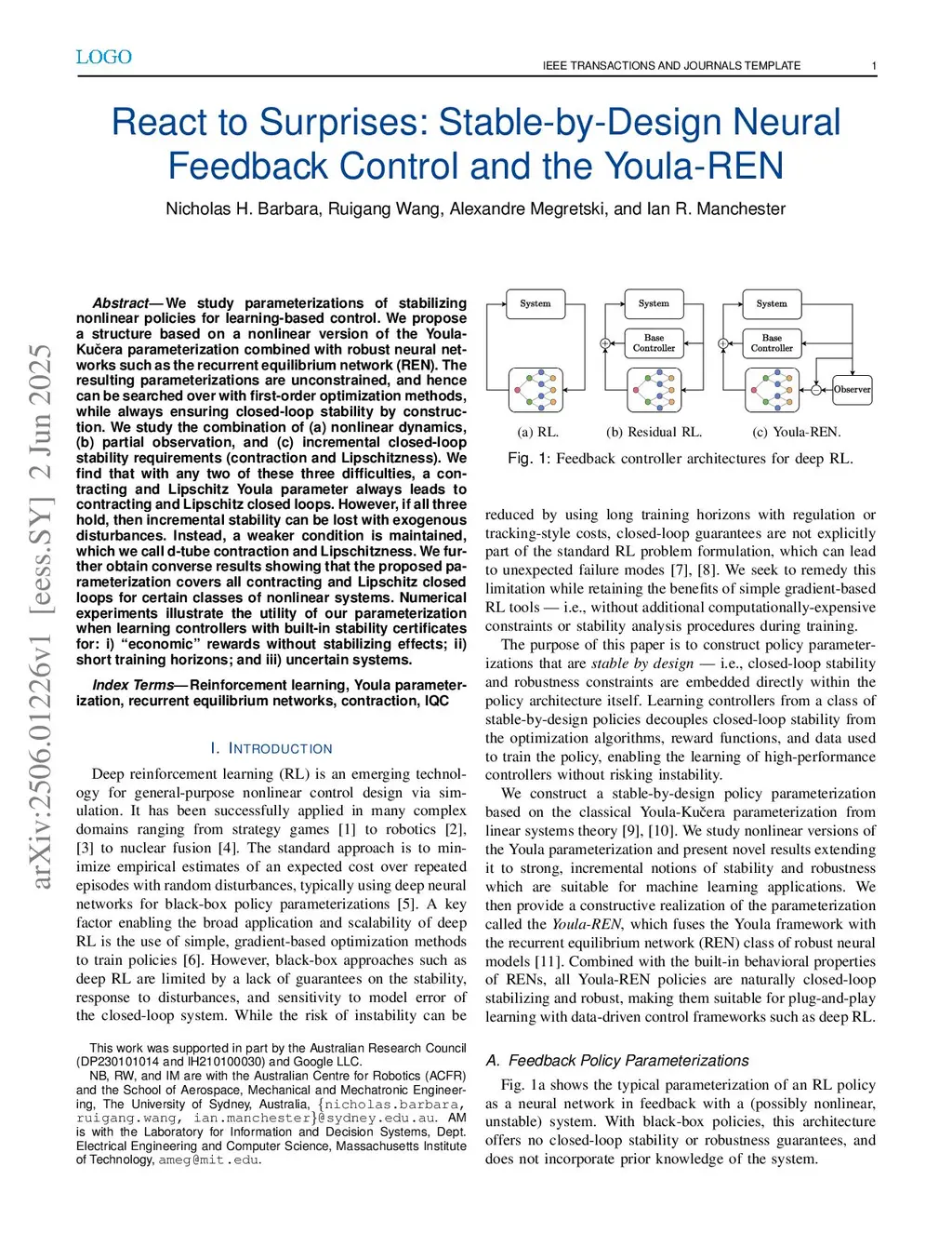 React to Surprises: Stable-by-Design Neural Feedback Control and the Youla-REN