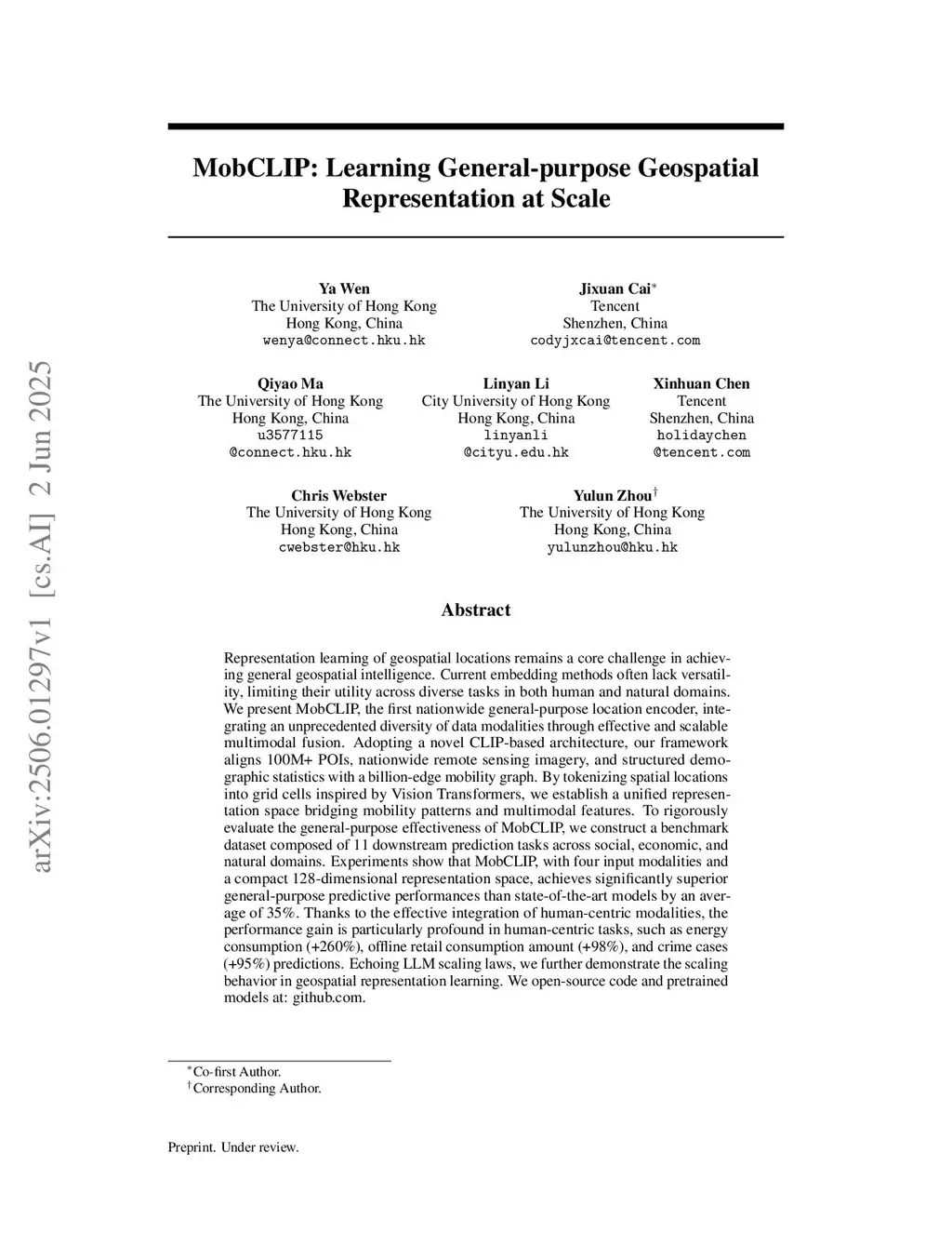 Representation learning of geospatial locations remains a core challenge in achieving general geospatial intelligence, with increasingly diverging philosophies and techniques. While Earth observation paradigms excel at depicting locations in their physical states, we claim that a location's comprehensive "meaning" is better grounded in its internal human activity patterns and, crucially, its functional relationships with other locations, as revealed by human movement. We present MoRA, a human-centric geospatial framework that leverages a mobility graph as its core backbone to fuse various data modalities, aiming to learn embeddings that represent the socio-economic context and functional role of a location. MoRA achieves this through the integration of spatial tokenization, GNNs, and asymmetric contrastive learning to align 100M+ POIs, massive remote sensing imagery, and structured demographic statistics with a billion-edge mobility graph, ensuring the three auxiliary modalities are interpreted through the lens of fundamental human dynamics. To rigorously evaluate the effectiveness of MoRA, we construct a benchmark dataset composed of 9 downstream prediction tasks across social and economic domains. Experiments show that MoRA, with four input modalities and a compact 128-dimensional representation space, achieves superior predictive performances than state-of-the-art models by an average of 12.9%. Echoing LLM scaling laws, we further demonstrate the scaling behavior in geospatial representation learning. We open-source code and pretrained models at:this https URL.