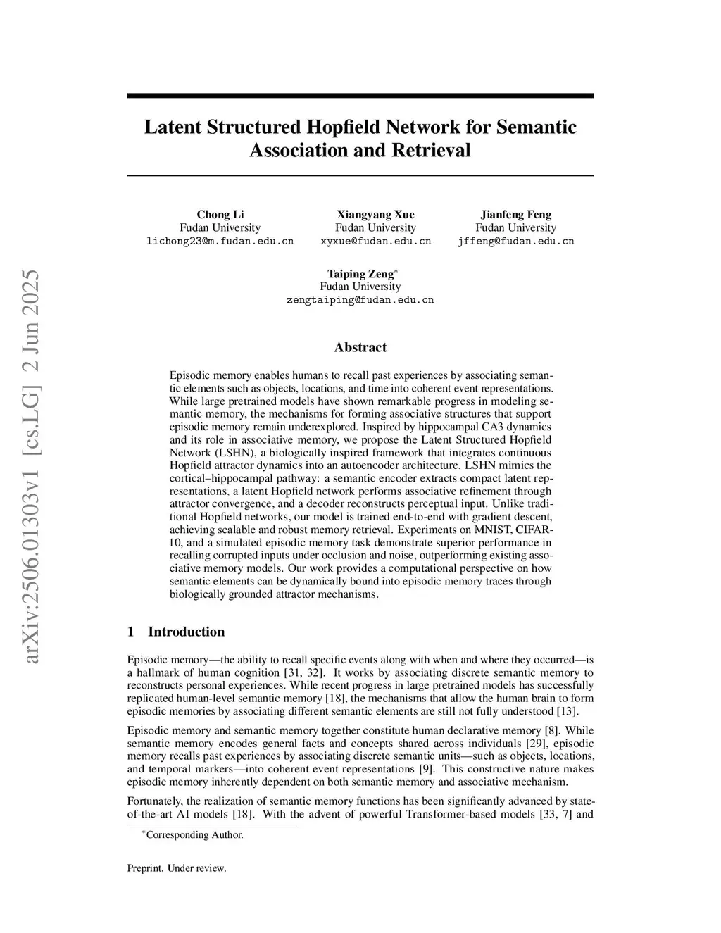 Latent Structured Hopfield Network for Semantic Association and Retrieval