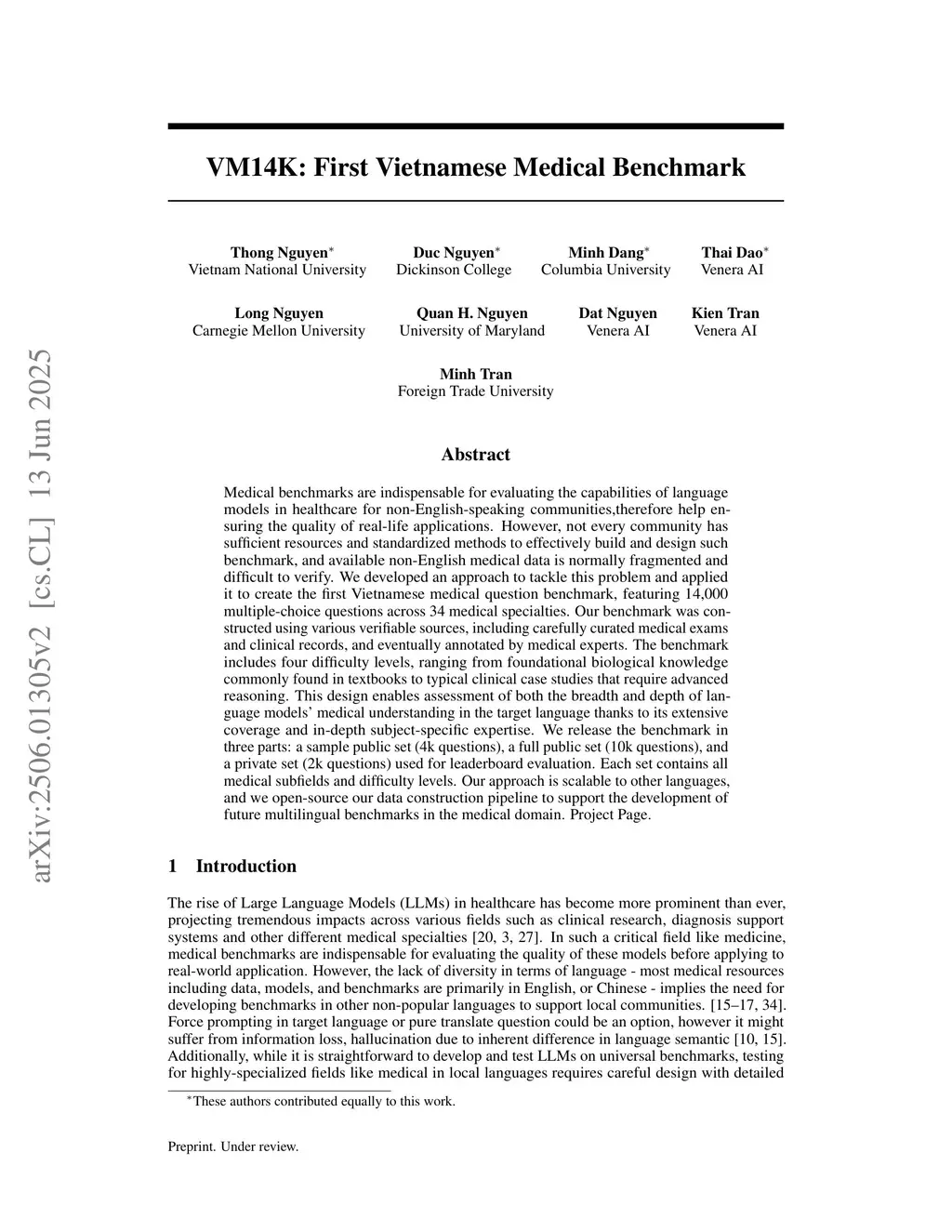 Medical benchmarks are indispensable for evaluating the capabilities of language models in healthcare for non-English-speaking communities,therefore help ensuring the quality of real-life applications. However, not every community has sufficient resources and standardized methods to effectively build and design such benchmark, and available non-English medical data is normally fragmented and difficult to verify. We developed an approach to tackle this problem and applied it to create the first Vietnamese medical question benchmark, featuring 14,000 multiple-choice questions across 34 medical specialties. Our benchmark was constructed using various verifiable sources, including carefully curated medical exams and clinical records, and eventually annotated by medical experts. The benchmark includes four difficulty levels, ranging from foundational biological knowledge commonly found in textbooks to typical clinical case studies that require advanced reasoning. This design enables assessment of both the breadth and depth of language models' medical understanding in the target language thanks to its extensive coverage and in-depth subject-specific expertise. We release the benchmark in three parts: a sample public set (4k questions), a full public set (10k questions), and a private set (2k questions) used for leaderboard evaluation. Each set contains all medical subfields and difficulty levels. Our approach is scalable to other languages, and we open-source our data construction pipeline to support the development of future multilingual benchmarks in the medical domain.
