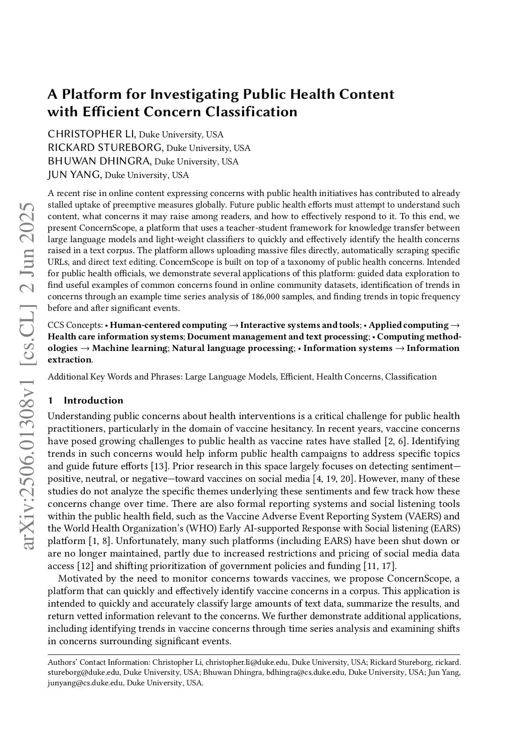 A Platform for Investigating Public Health Content with Efficient Concern Classification