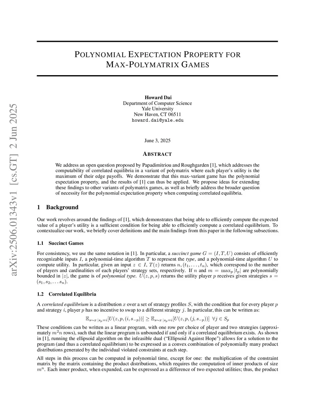 We address an open problem on the computability of correlated equilibria in a variant of polymatrix where each player's utility is the maximum of their edge payoffs. We demonstrate that this max-variant game has the polynomial expectation property, and the results of Papadimitriou and Roughgarden can thus be applied. We propose ideas for extending these findings to other variants of polymatrix games, as well as briefly address the broader question of necessity for the polynomial expectation property when computing correlated equilibria.