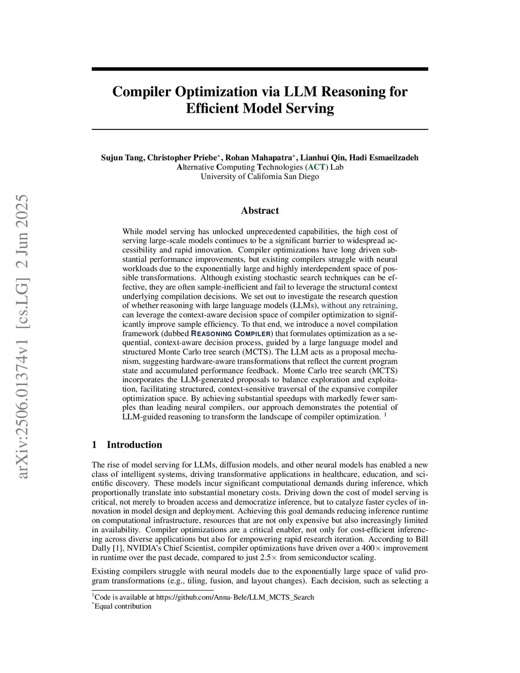 REASONING COMPILER: LLM-Guided Optimizations for Efficient Model Serving