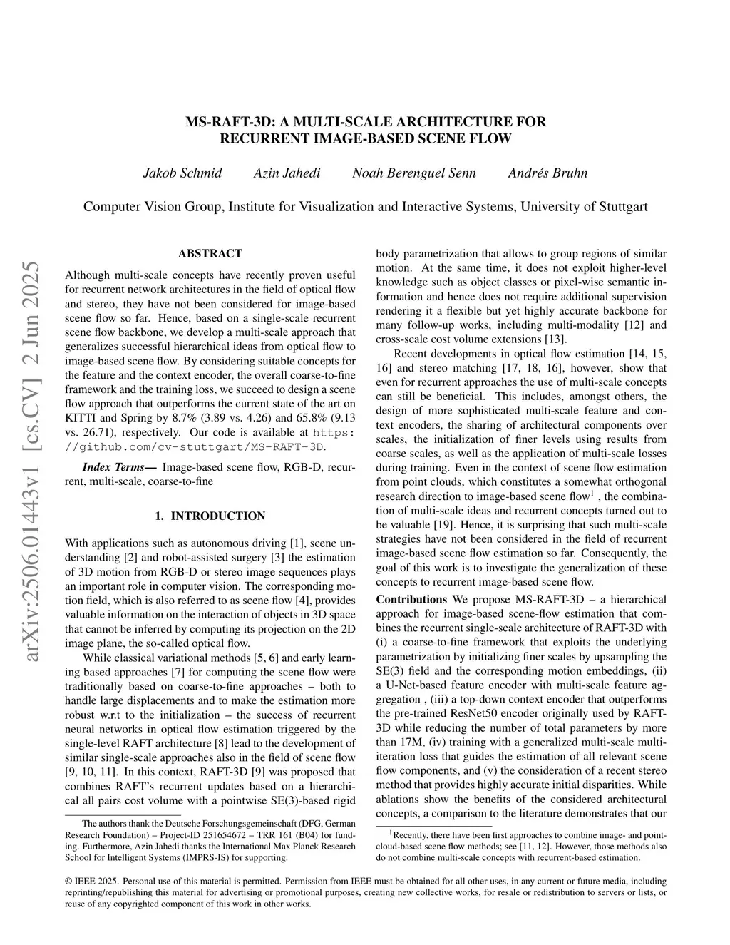 MS-RAFT-3D: A Multi-Scale Architecture for Recurrent Image-Based Scene Flow