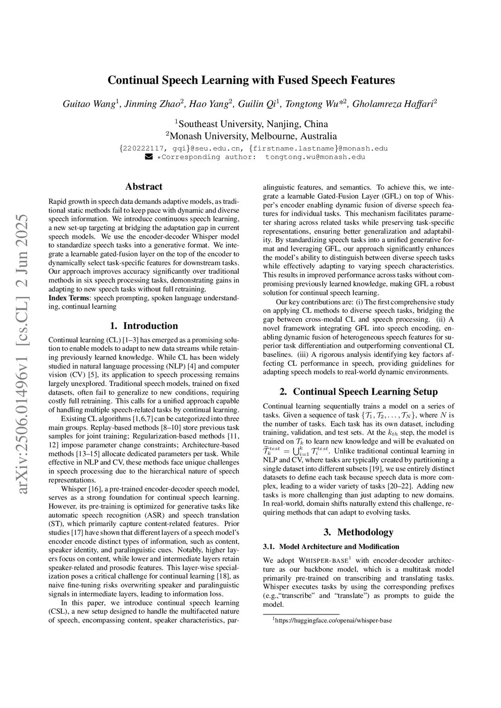 Continual Speech Learning with Fused Speech Features