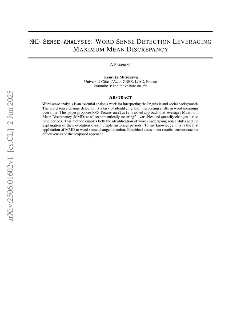 Word Sense Detection Leveraging Maximum Mean Discrepancy