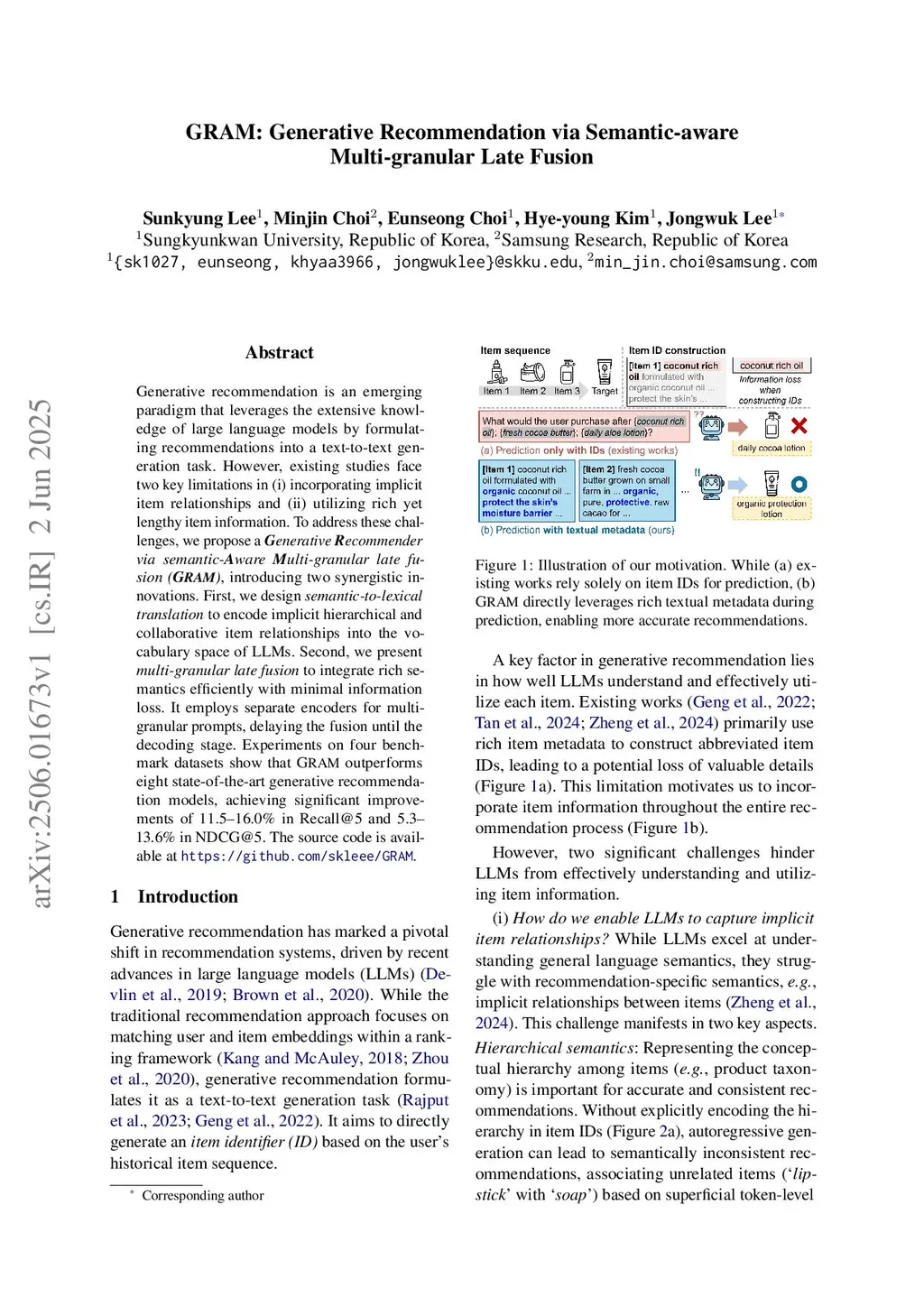 GRAM: Generative Recommendation via Semantic-aware Multi-granular Late Fusion