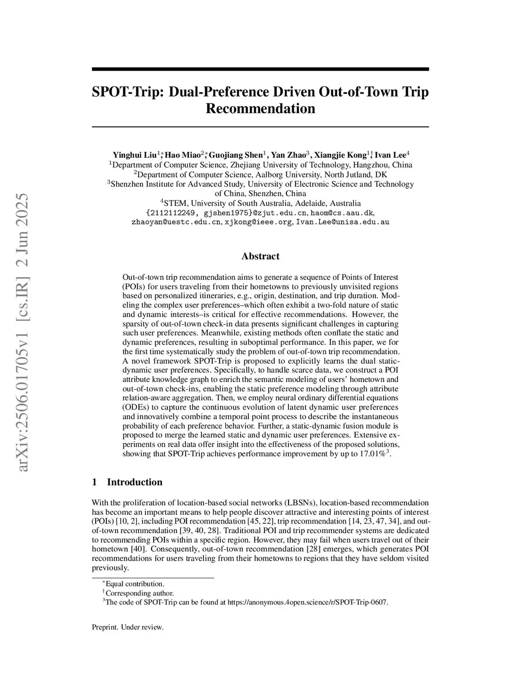 SPOT-Trip: Dual-Preference Driven Out-of-Town Trip Recommendation