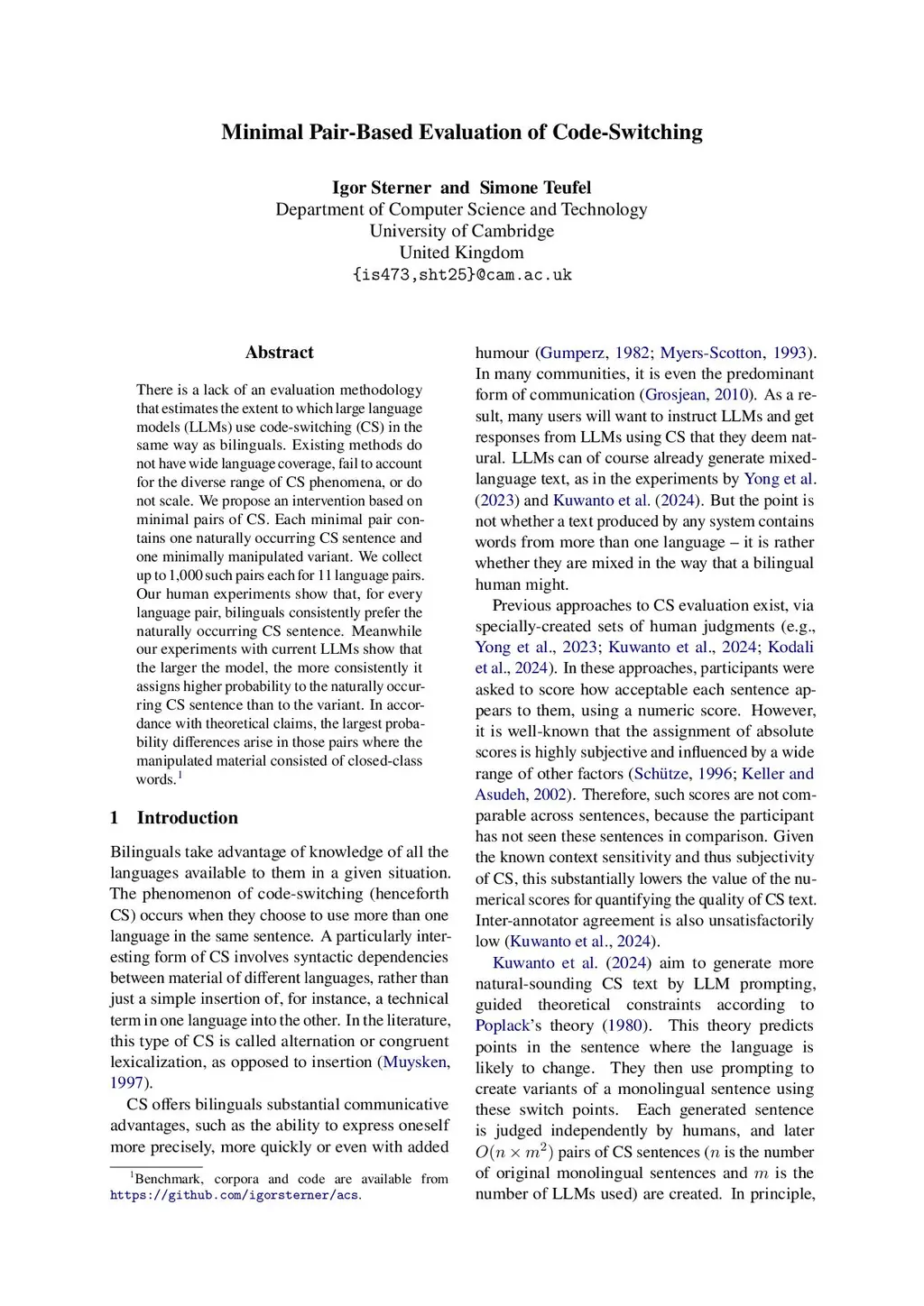 There is a lack of an evaluation methodology that estimates the extent to which large language models (LLMs) use code-switching (CS) in the same way as bilinguals. Existing methods do not have wide language coverage, fail to account for the diverse range of CS phenomena, or do not scale. We propose an intervention based on minimal pairs of CS. Each minimal pair contains one naturally occurring CS sentence and one minimally manipulated variant. We collect up to 1,000 such pairs each for 11 language pairs. Our human experiments show that, for every language pair, bilinguals consistently prefer the naturally occurring CS sentence. Meanwhile our experiments with current LLMs show that the larger the model, the more consistently it assigns higher probability to the naturally occurring CS sentence than to the variant. In accordance with theoretical claims, the largest probability differences arise in those pairs where the manipulated material consisted of closed-class words.