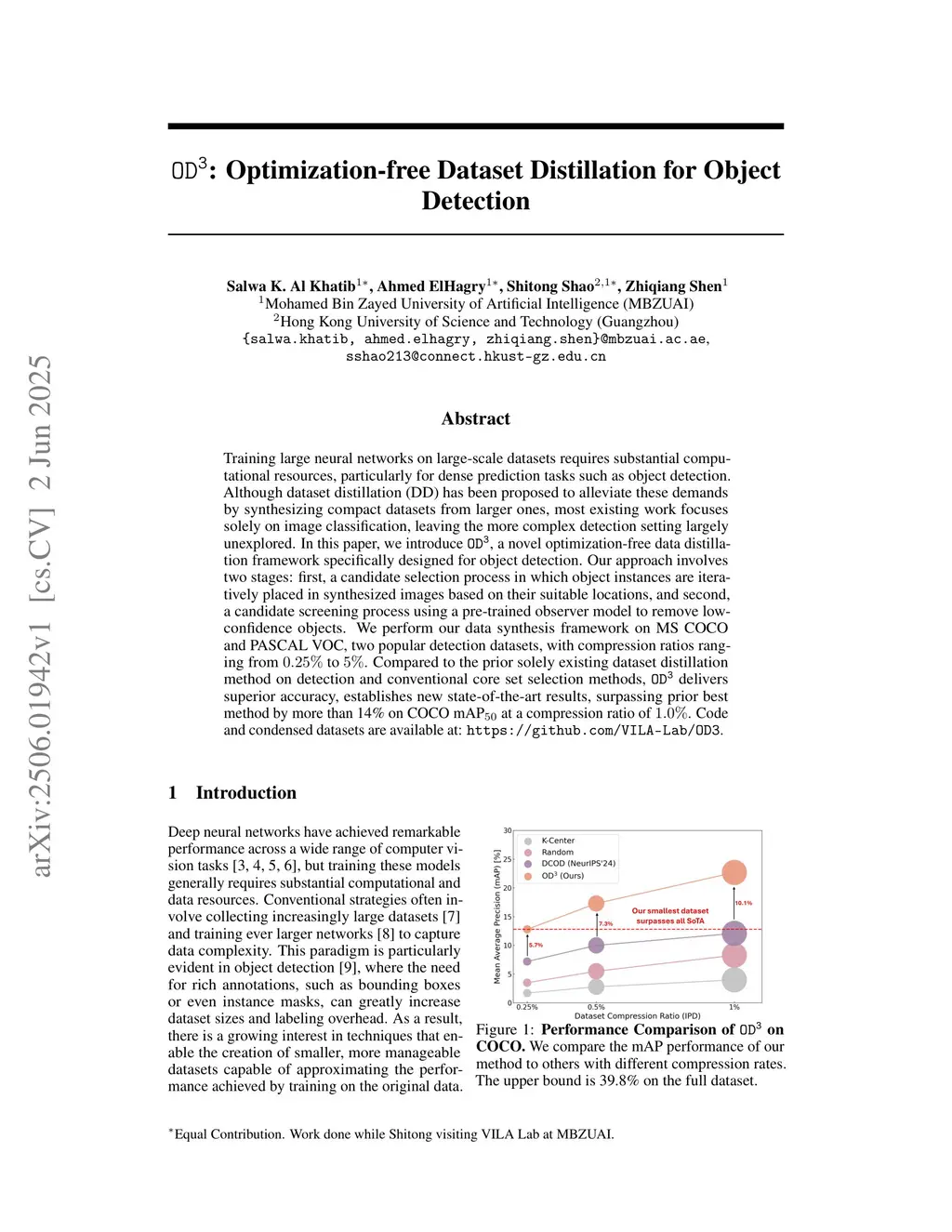 OD3: Optimization-free Dataset Distillation for Object Detection