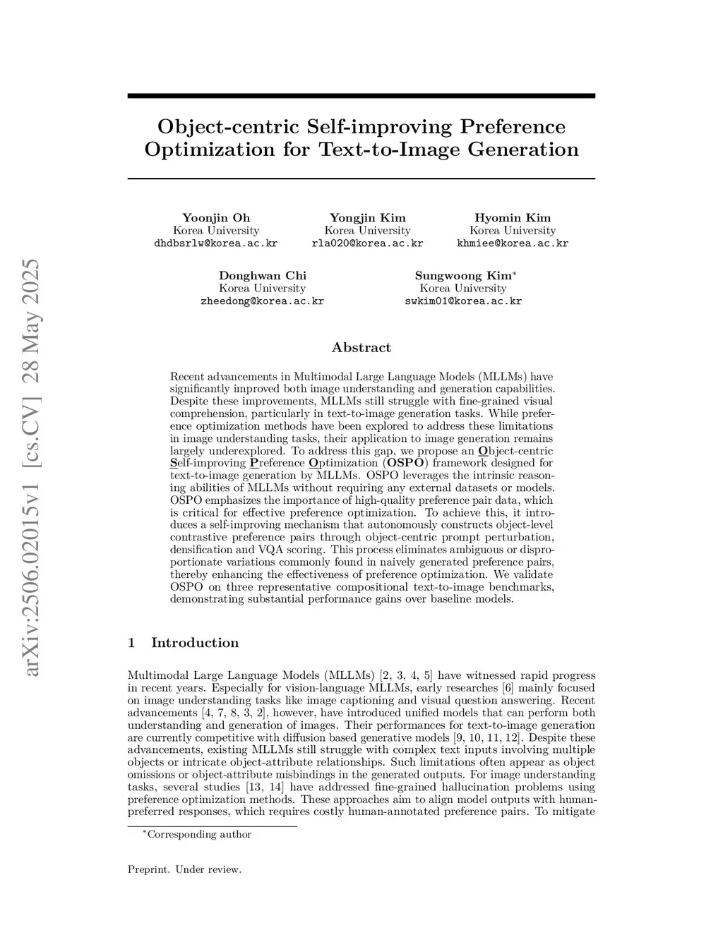 OSPO: Object-Centric Self-Improving Preference Optimization for Text-to-Image Generation