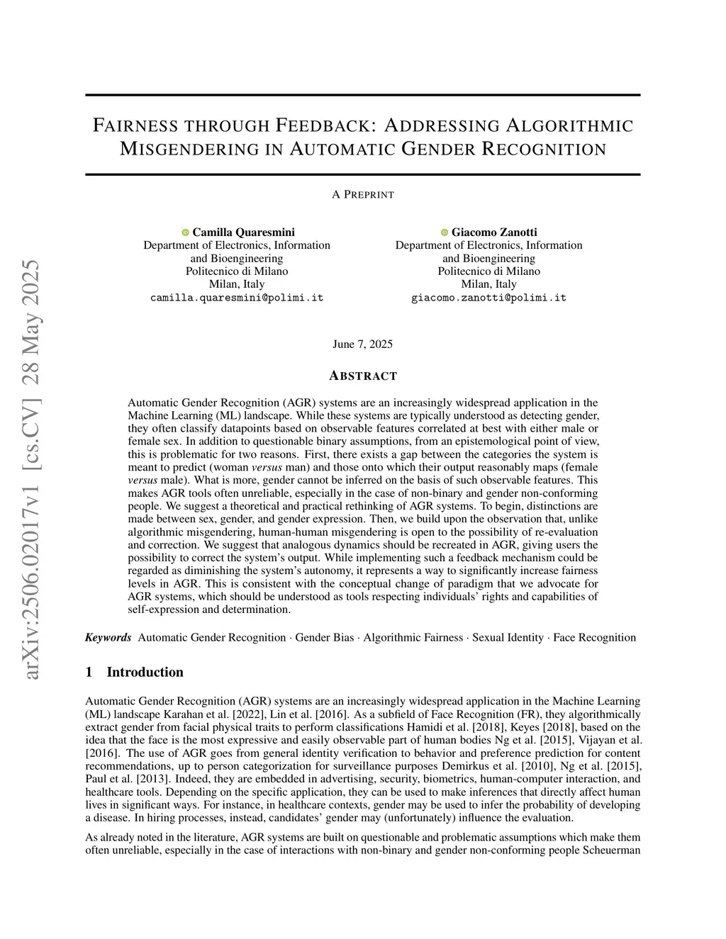 Automatic Gender Recognition (AGR) systems are an increasingly widespread application in the Machine Learning (ML) landscape. While these systems are typically understood as detecting gender, they often classify datapoints based on observable features correlated at best with either male or female sex. In addition to questionable binary assumptions, from an epistemological point of view, this is problematic for two reasons. First, there exists a gap between the categories the system is meant to predict (woman versus man) and those onto which their output reasonably maps (female versus male). What is more, gender cannot be inferred on the basis of such observable features. This makes AGR tools often unreliable, especially in the case of non-binary and gender non-conforming people. We suggest a theoretical and practical rethinking of AGR systems. To begin, distinctions are made between sex, gender, and gender expression. Then, we build upon the observation that, unlike algorithmic misgendering, human-human misgendering is open to the possibility of re-evaluation and correction. We suggest that analogous dynamics should be recreated in AGR, giving users the possibility to correct the system's output. While implementing such a feedback mechanism could be regarded as diminishing the system's autonomy, it represents a way to significantly increase fairness levels in AGR. This is consistent with the conceptual change of paradigm that we advocate for AGR systems, which should be understood as tools respecting individuals' rights and capabilities of self-expression and determination.