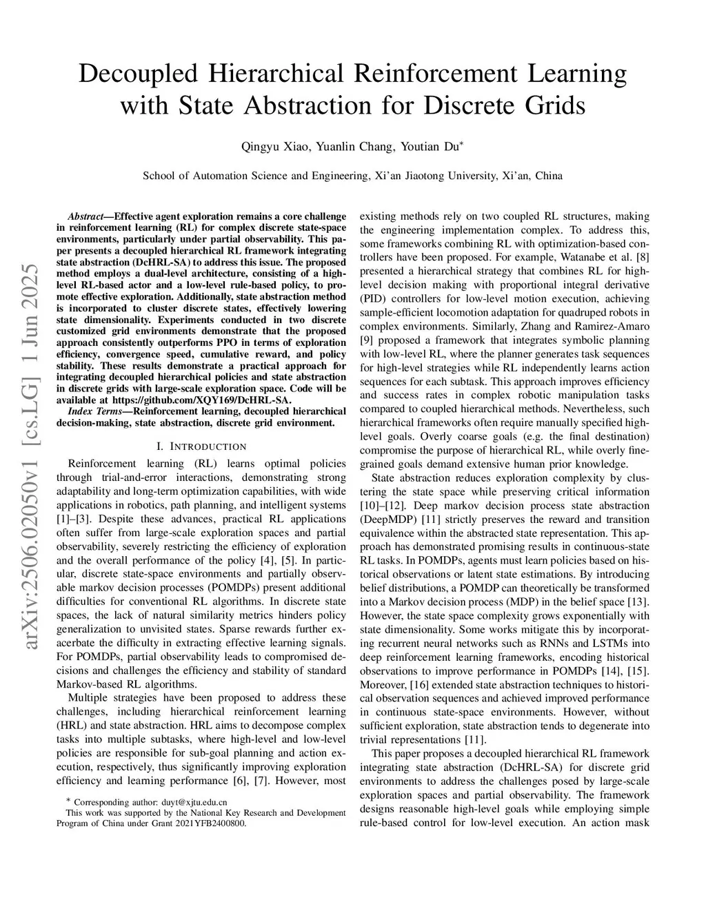 Decoupled Hierarchical Reinforcement Learning with State Abstraction for Discrete Grids
