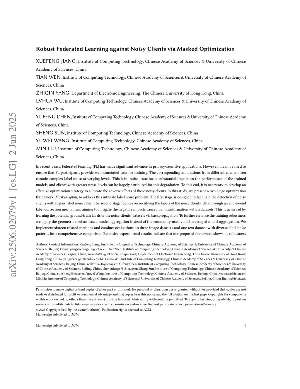 Robust Federated Learning against Noisy Clients via Masked Optimization