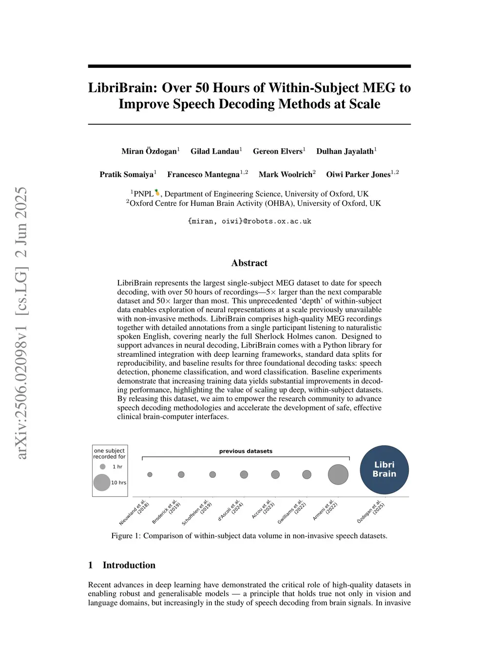 LibriBrain represents the largest single-subject MEG dataset to date for speech decoding, with over 50 hours of recordings -- 5 larger than the next comparable dataset and 50 larger than most. This unprecedented `depth' of within-subject data enables exploration of neural representations at a scale previously unavailable with non-invasive methods. LibriBrain comprises high-quality MEG recordings together with detailed annotations from a single participant listening to naturalistic spoken English, covering nearly the full Sherlock Holmes canon. Designed to support advances in neural decoding, LibriBrain comes with a Python library for streamlined integration with deep learning frameworks, standard data splits for reproducibility, and baseline results for three foundational decoding tasks: speech detection, phoneme classification, and word classification. Baseline experiments demonstrate that increasing training data yields substantial improvements in decoding performance, highlighting the value of scaling up deep, within-subject datasets. By releasing this dataset, we aim to empower the research community to advance speech decoding methodologies and accelerate the development of safe, effective clinical brain-computer interfaces.