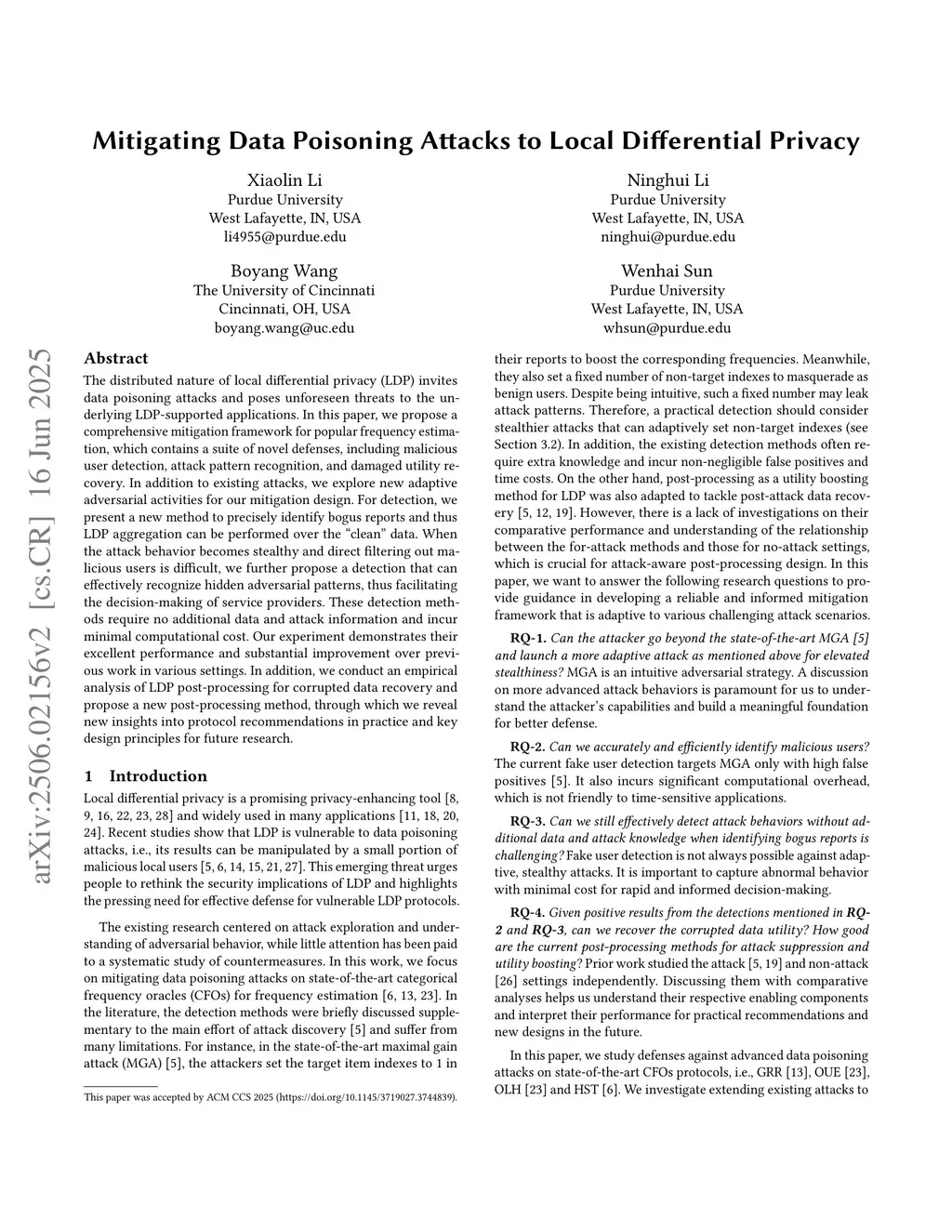 Mitigating Data Poisoning Attacks to Local Differential Privacy