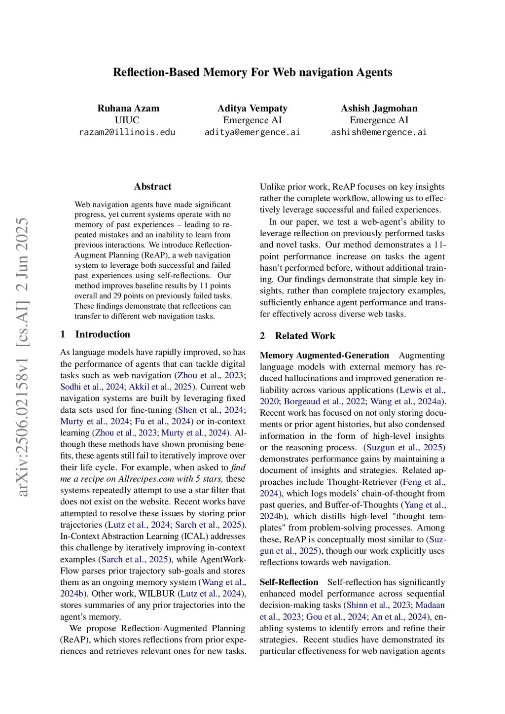 Web navigation agents have made significant progress, yet current systems operate with no memory of past experiences -- leading to repeated mistakes and an inability to learn from previous interactions. We introduce Reflection-Augment Planning (ReAP), a web navigation system to leverage both successful and failed past experiences using self-reflections. Our method improves baseline results by 11 points overall and 29 points on previously failed tasks. These findings demonstrate that reflections can transfer to different web navigation tasks.