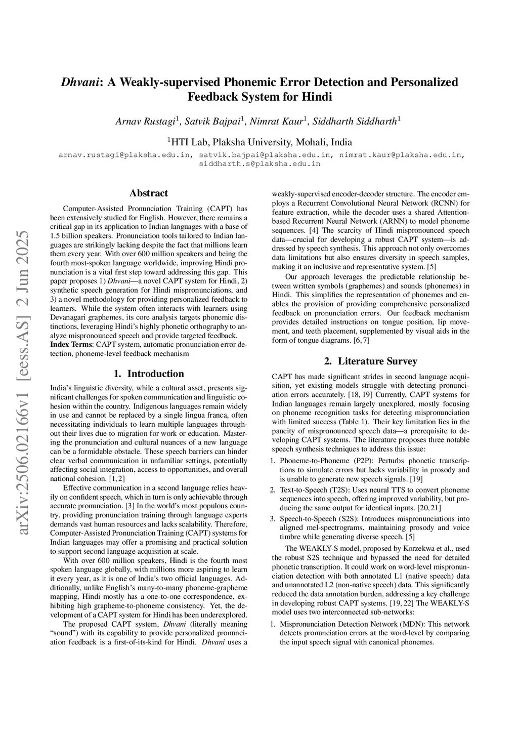 Dhvani: A Weakly-supervised Phonemic Error Detection and Personalized Feedback System for Hindi