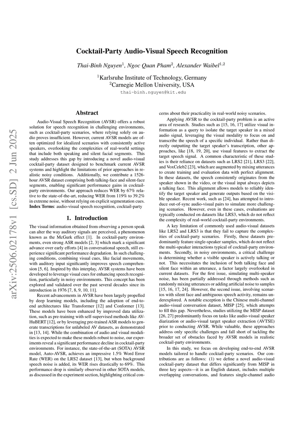 Audio-Visual Speech Recognition (AVSR) offers a robust solution for speech recognition in challenging environments, such as cocktail-party scenarios, where relying solely on audio proves insufficient. However, current AVSR models are often optimized for idealized scenarios with consistently active speakers, overlooking the complexities of real-world settings that include both speaking and silent facial segments. This study addresses this gap by introducing a novel audio-visual cocktail-party dataset designed to benchmark current AVSR systems and highlight the limitations of prior approaches in realistic noisy conditions. Additionally, we contribute a 1526-hour AVSR dataset comprising both talking-face and silent-face segments, enabling significant performance gains in cocktail-party environments. Our approach reduces WER by 67% relative to the state-of-the-art, reducing WER from 119% to 39.2% in extreme noise, without relying on explicit segmentation cues.