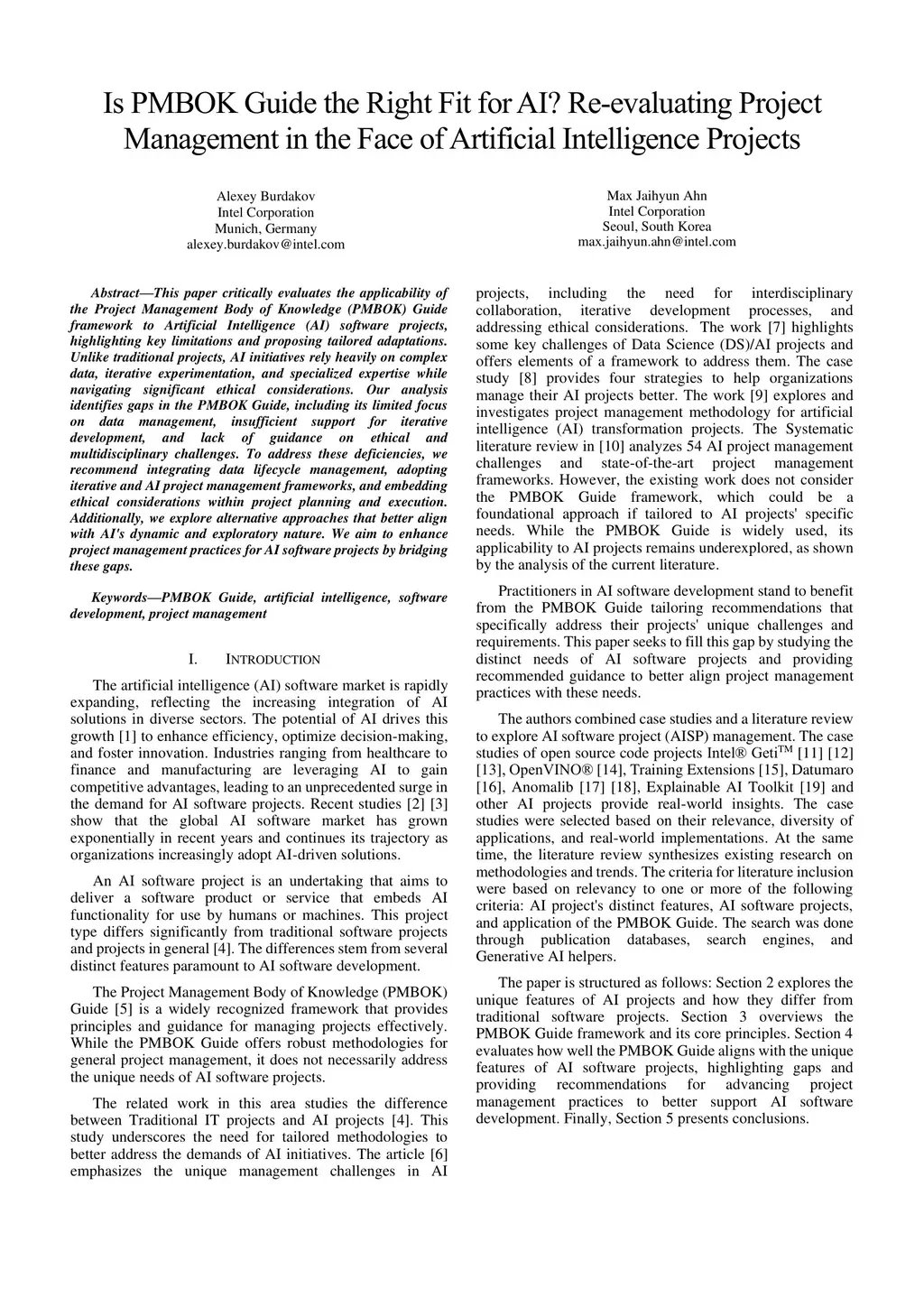 Is PMBOK Guide the Right Fit for AI? Re-evaluating Project Management in the Face of Artificial Intelligence Projects