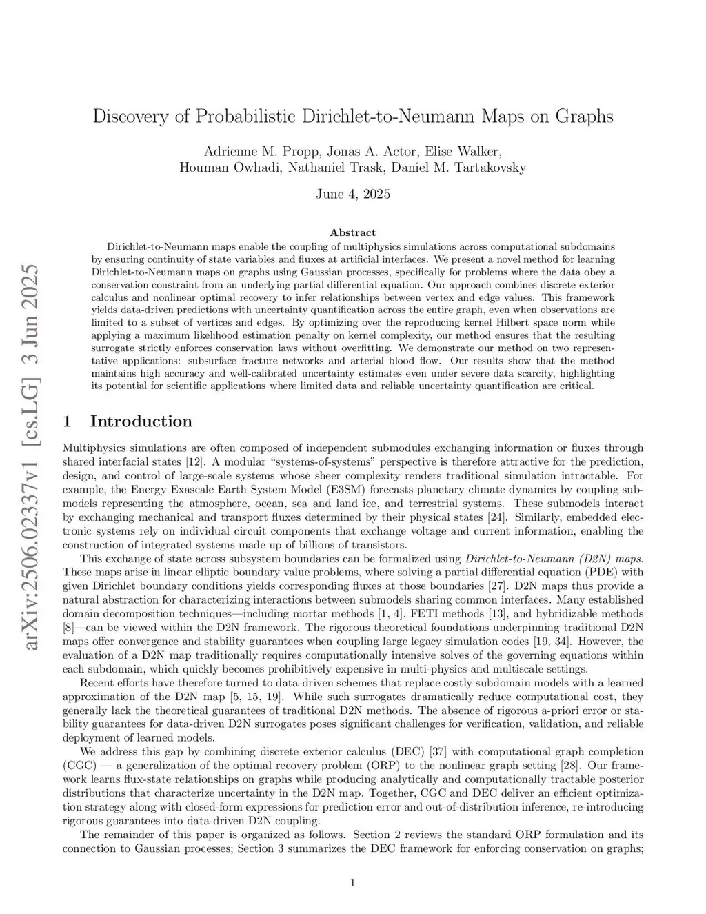 Dirichlet-to-Neumann maps enable the coupling of multiphysics simulations across computational subdomains by ensuring continuity of state variables and fluxes at artificial interfaces. We present a novel method for learning Dirichlet-to-Neumann maps on graphs using Gaussian processes, specifically for problems where the data obey a conservation constraint from an underlying partial differential equation. Our approach combines discrete exterior calculus and nonlinear optimal recovery to infer relationships between vertex and edge values. This framework yields data-driven predictions with uncertainty quantification across the entire graph, even when observations are limited to a subset of vertices and edges. By optimizing over the reproducing kernel Hilbert space norm while applying a maximum likelihood estimation penalty on kernel complexity, our method ensures that the resulting surrogate strictly enforces conservation laws without overfitting. We demonstrate our method on two representative applications: subsurface fracture networks and arterial blood flow. Our results show that the method maintains high accuracy and well-calibrated uncertainty estimates even under severe data scarcity, highlighting its potential for scientific applications where limited data and reliable uncertainty quantification are critical.