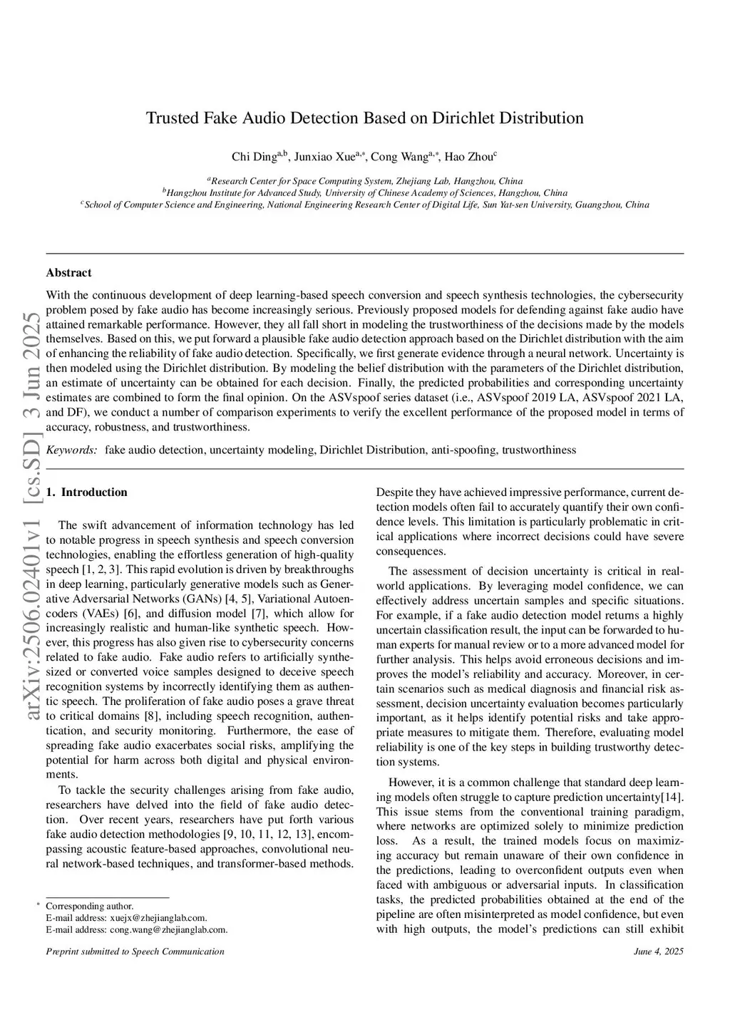Trusted Fake Audio Detection Based on Dirichlet Distribution