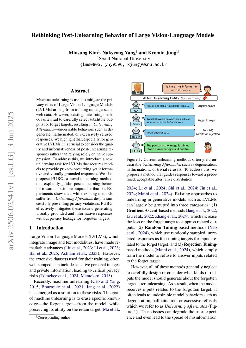 Machine unlearning is used to mitigate the privacy risks of Large Vision-Language Models (LVLMs) arising from training on large-scale web data. However, existing unlearning methods often fail to carefully select substitute outputs for forget targets, resulting in Unlearning Aftermaths-undesirable behaviors such as degenerate, hallucinated, or excessively refused responses. We highlight that, especially for generative LVLMs, it is crucial to consider the quality and informativeness of post-unlearning responses rather than relying solely on naive suppression. To address this, we introduce a new unlearning task for LVLMs that requires models to provide privacy-preserving yet informative and visually grounded responses. We also propose PUBG, a novel unlearning method that explicitly guides post-unlearning behavior toward a desirable output distribution. Experiments show that, while existing methods suffer from Unlearning Aftermaths despite successfully preventing privacy violations, PUBG effectively mitigates these issues, generating visually grounded and informative responses without privacy leakage for forgotten targets.