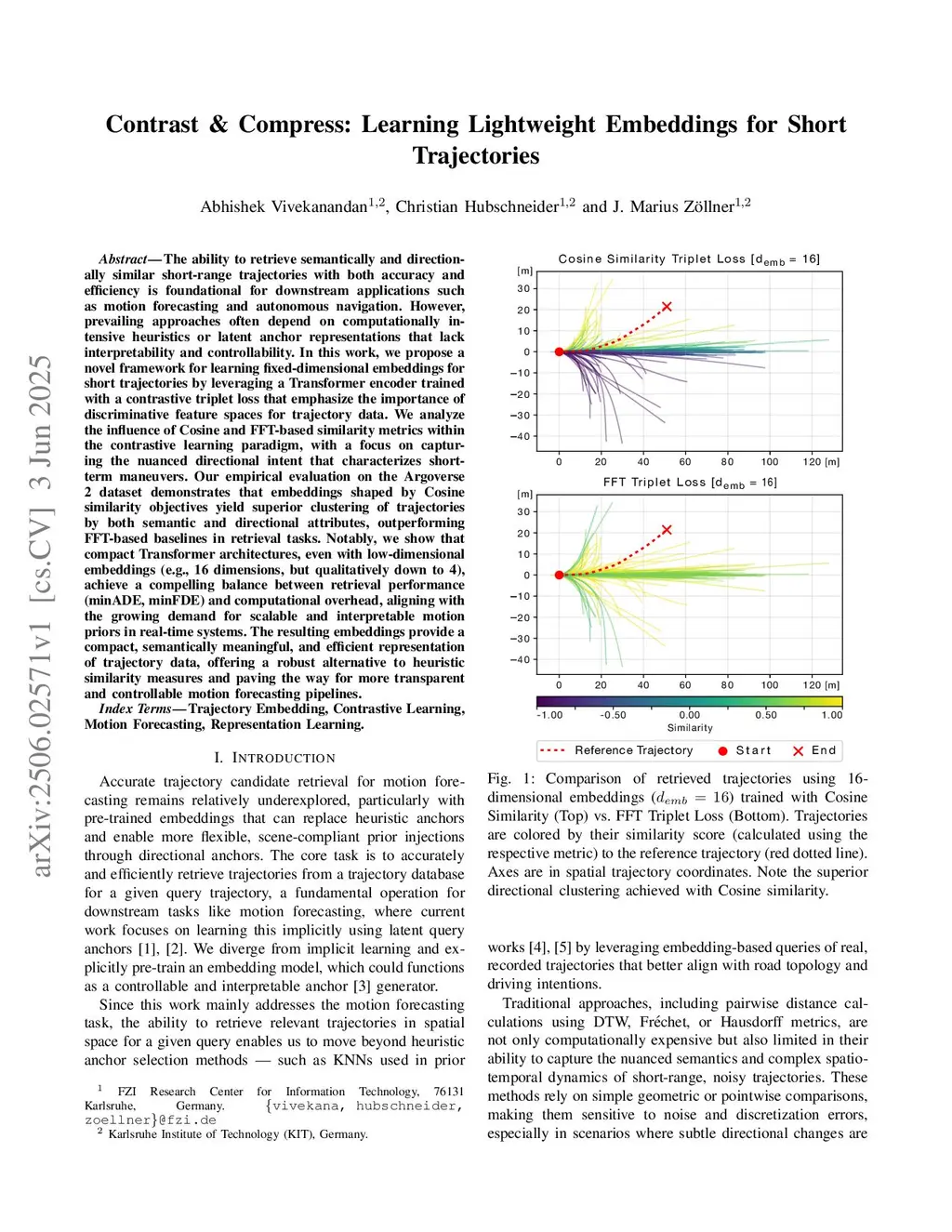 Contrast & Compress: Learning Lightweight Embeddings for Short Trajectories