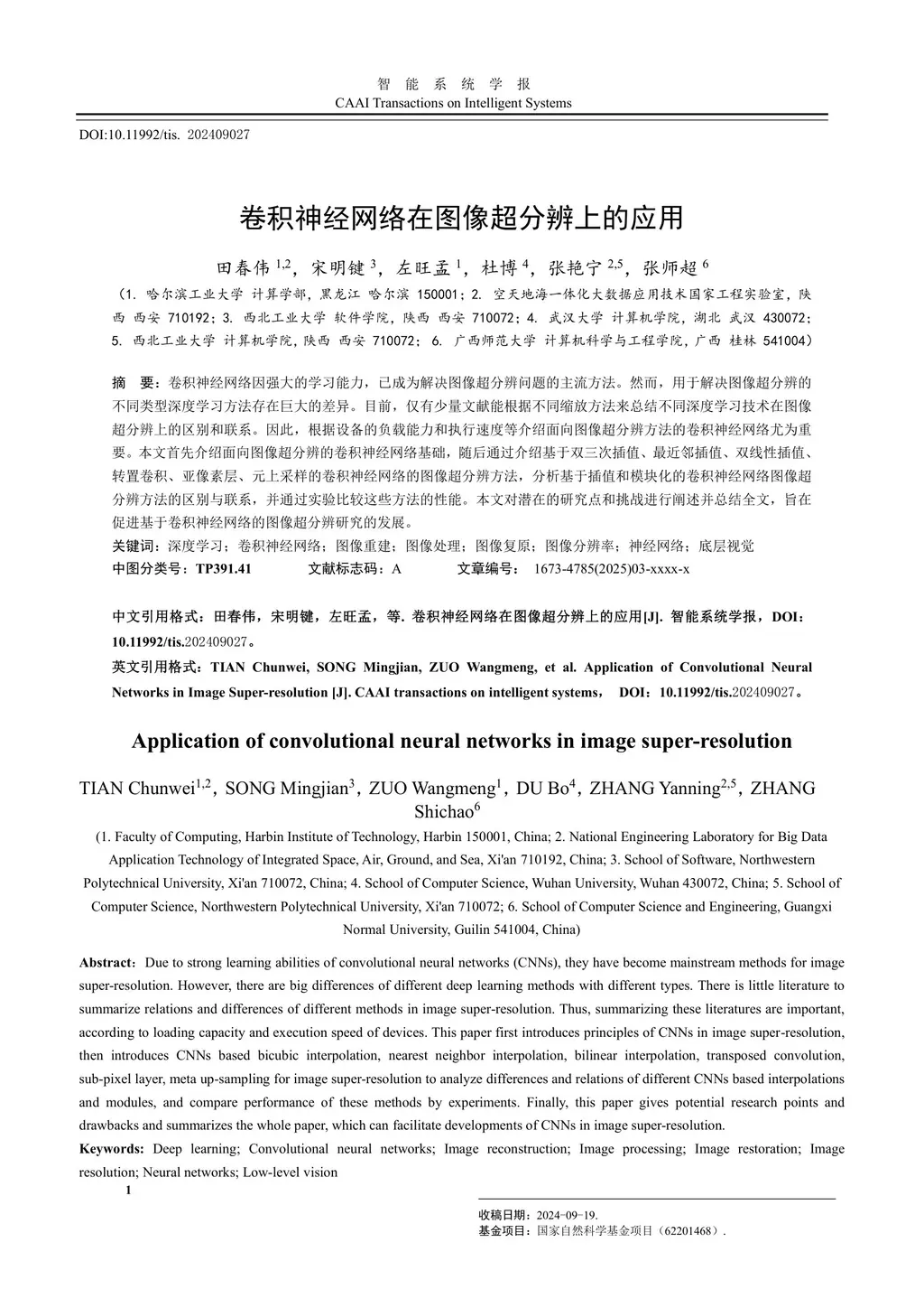 Application of convolutional neural networks in image super-resolution
