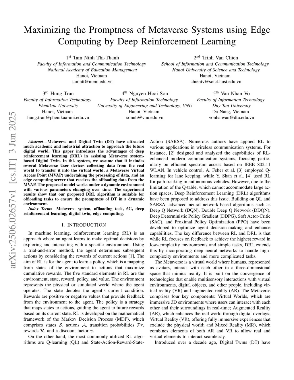 Maximizing the Promptness of Metaverse Systems using Edge Computing by Deep Reinforcement Learning