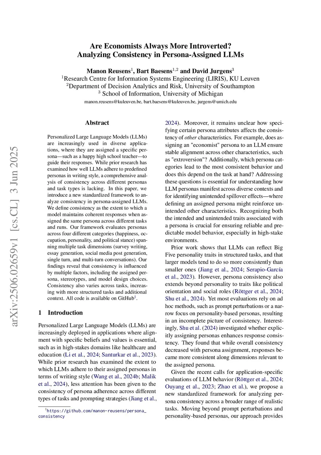 Are Economists Always More Introverted? Analyzing Consistency in Persona-Assigned LLMs